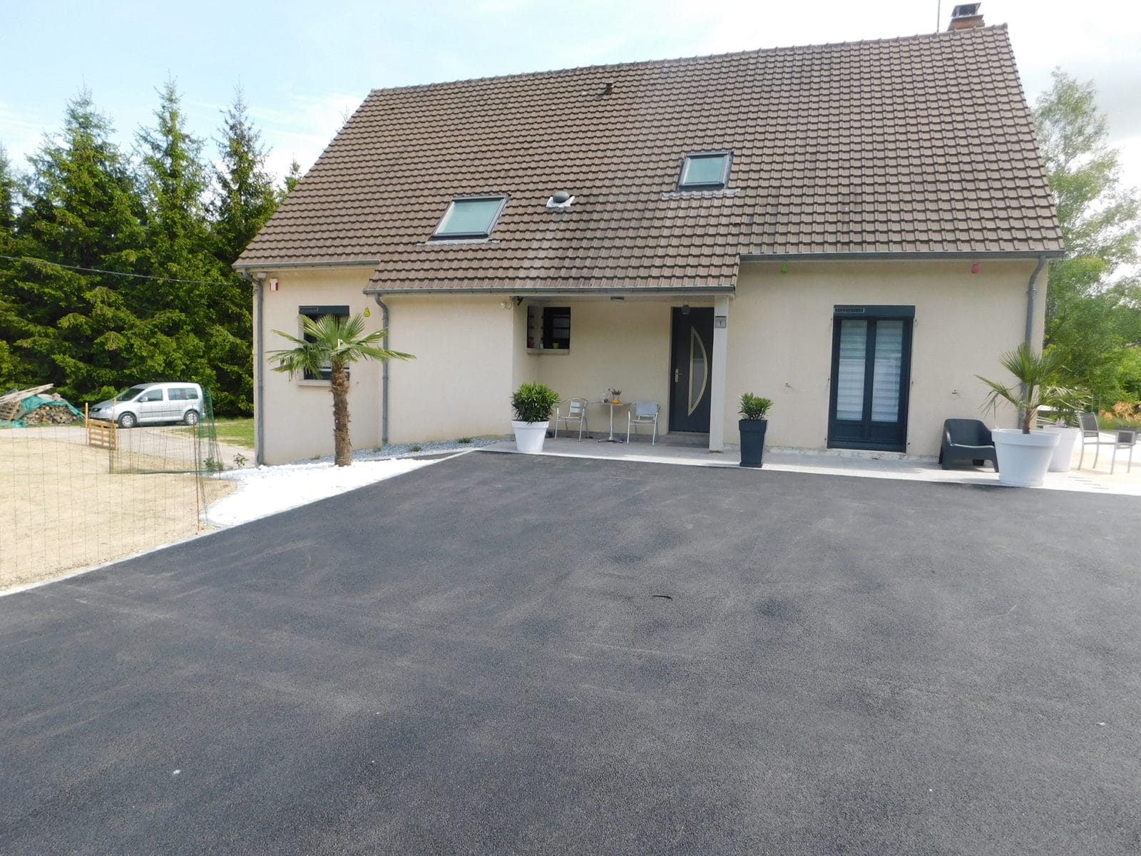 Conception d’une cour et accès en enrobé noir à chaud bordés de pavés Kronimus autour d’un pavillon de village. Merci à Simon et son équipe pour l’aboutissement de ce beau chantier et merci à nos clients pour leur entière confiance !