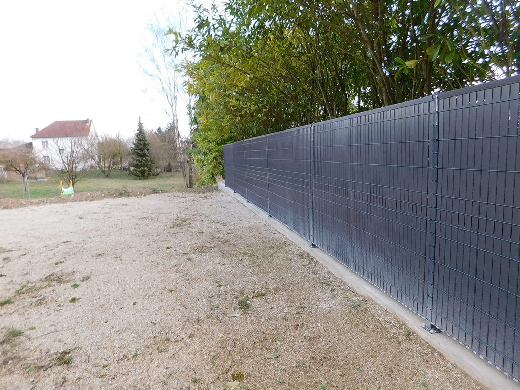 Mise en place d’un portail coulissant et clôture, aménagement d’un massif minéral avec allée en pavés « dune nuancé », palissade et montée en enrobé noir à...