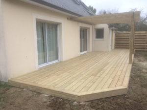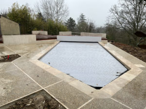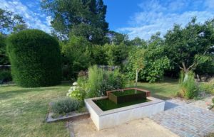 Aménagement complet de jardin : accès, carrés potager, pas japonais, structures acier corten découpes laser, béton poncé, végétalisation, dans un esprit méditerranéen. © Mathieu Petit Architecture extérieure.