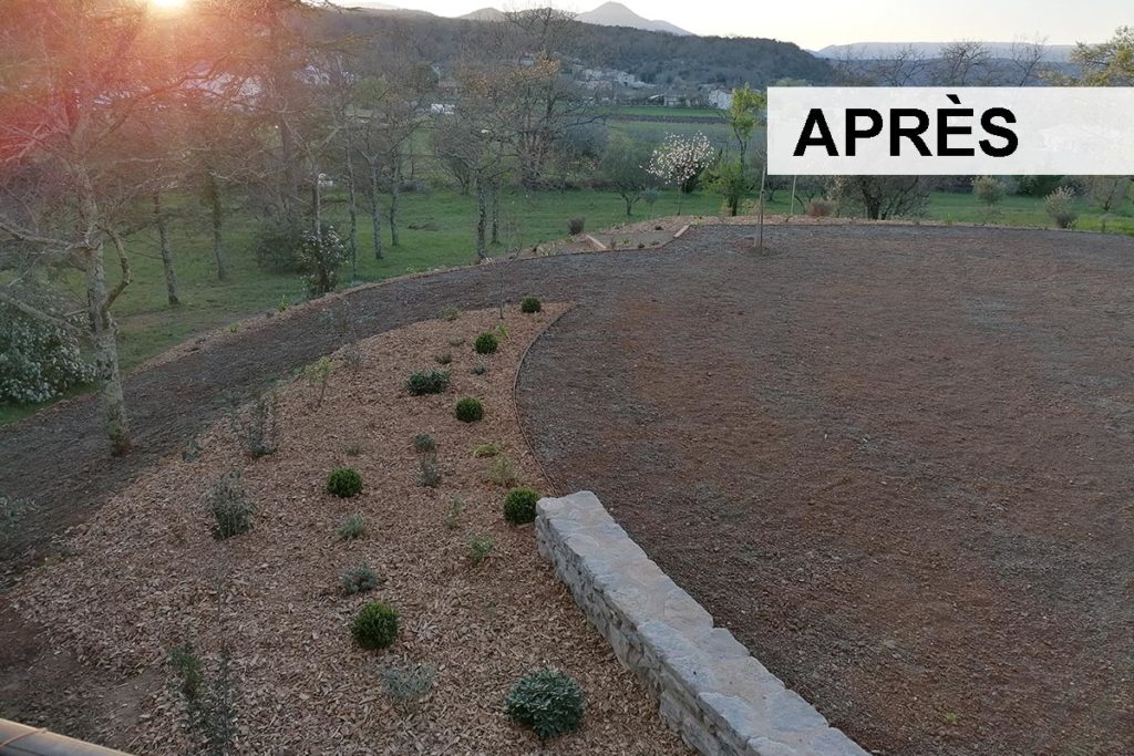 A présent le jardin est prêt à grandir, les arbustes et plantes vont profiter de la chaleur printanière, le gazon va se développer. C’était un plaisir de mettre en œuvre ce beau jardin !