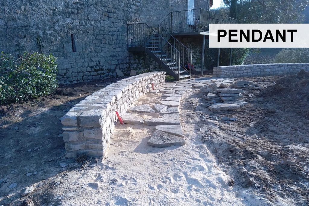 Retour en image sur ce chantier de cette fin d’hiver pour nos clients en Ardèche. Après le terrassement, place à la maçonnerie paysagère avec la construction de murets, d’un opus et l’installation d’une fontaine, le tout dans son écrin végétal.