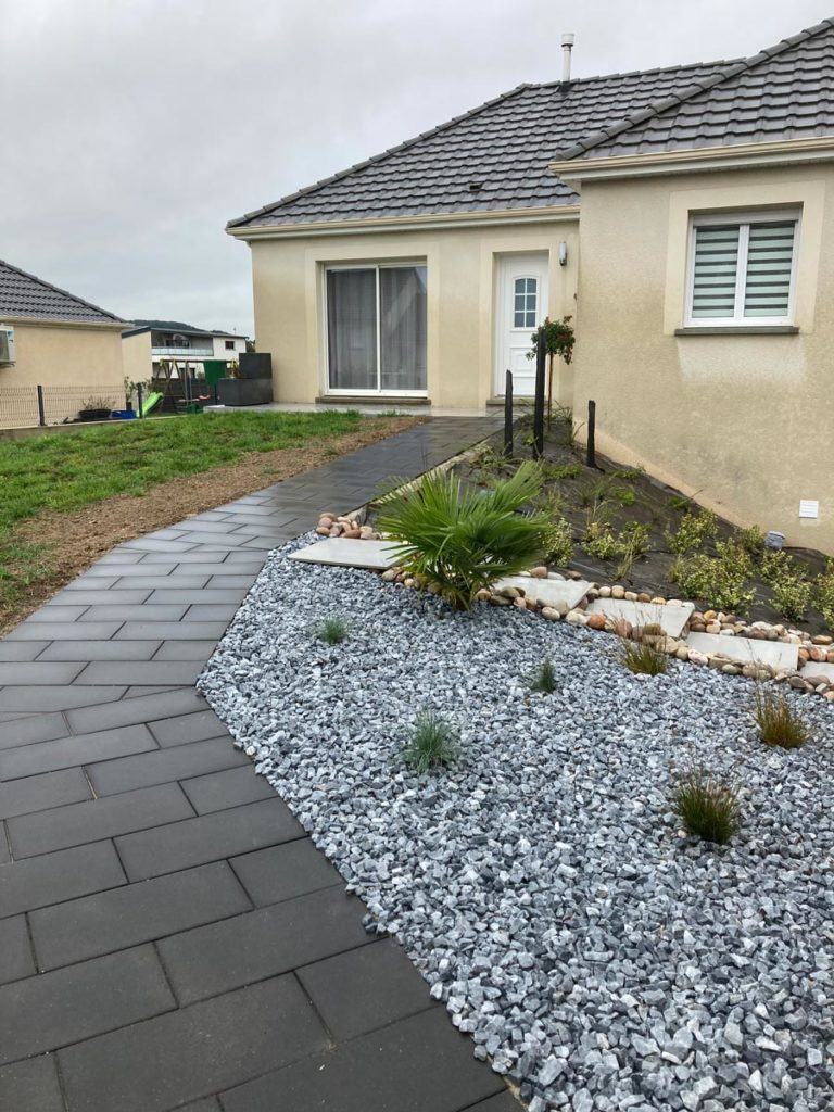 Nous vous laissons découvrir l’un de nos derniers chantiers. Création d’une allée en grès cérame et son massif de graminées et végétaux avec paillage minéral.