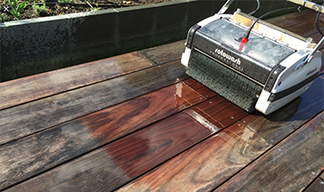 Attention, bien souvent les terrasses sont agressées par les produits ! Le nettoyage de la terrasse permet de limiter le risque de chute et de atténuer le grisement de votre terrasse.