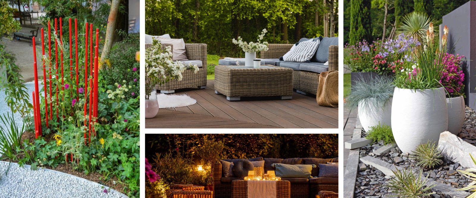 Faites installer une fontaine pour un jardin zen, créez vous-même des « sculptures » pour un jardin arty (cliquer ici pour des idées d’upcycling jardin).