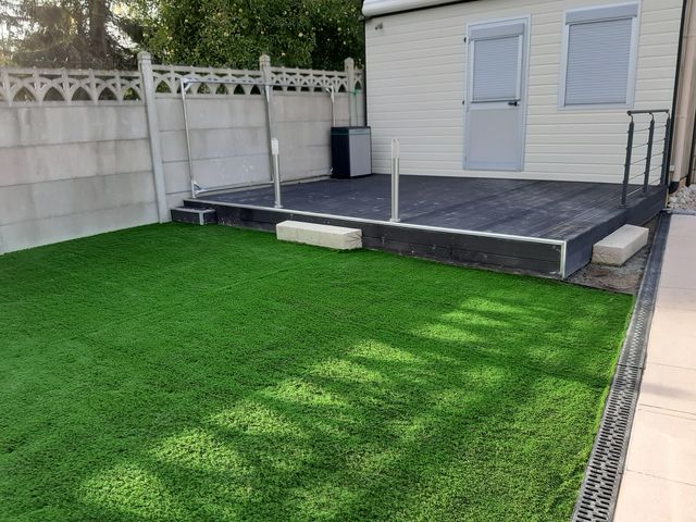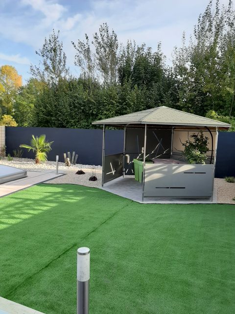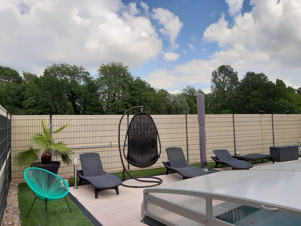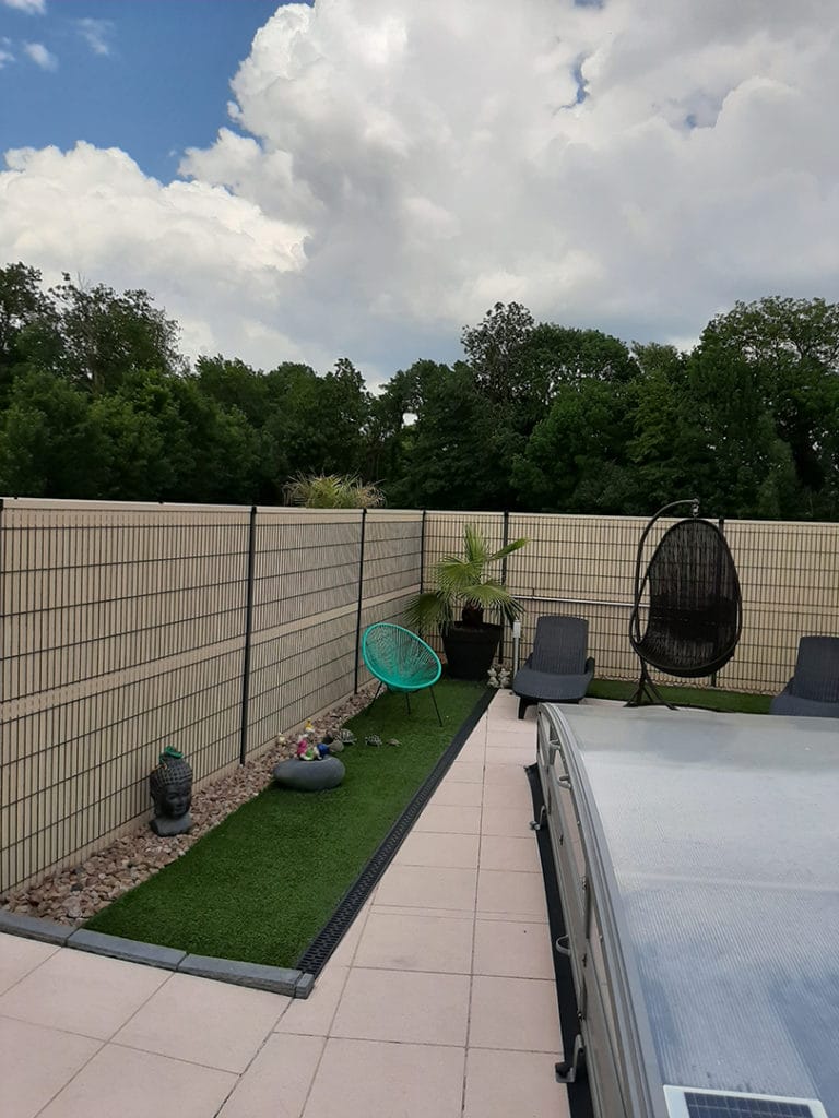 Aménagement d’un espace de style zen autour d’une piscine avec pose de gazon synthétique. Nos clients peuvent désormais profiter de cette nouvelle réalisation qui leur apporte sérénité et dépaysement.