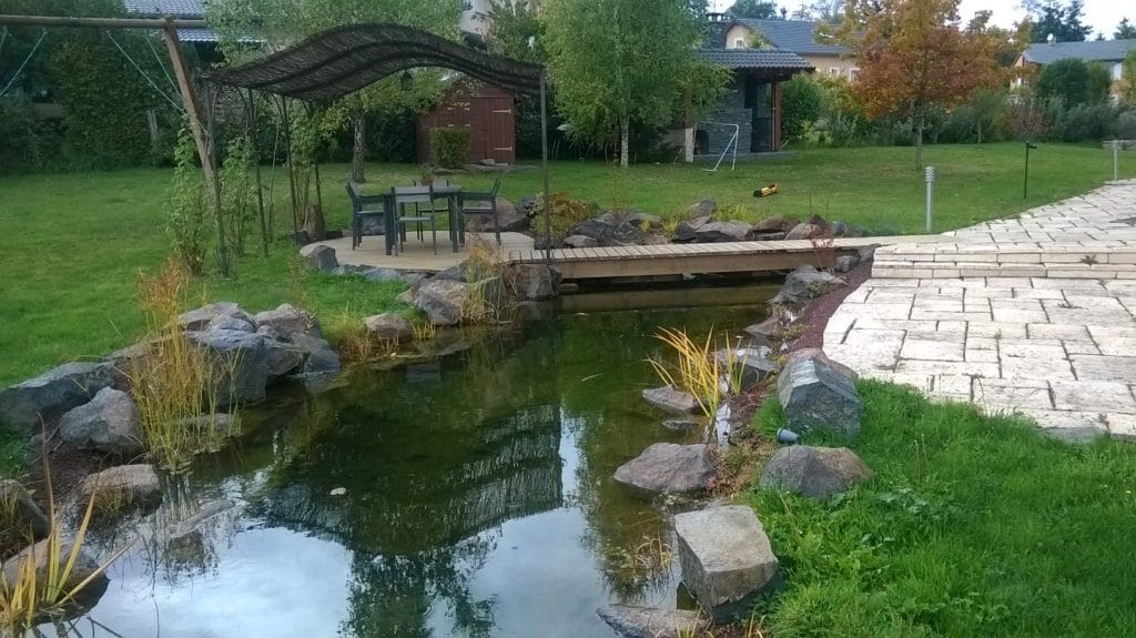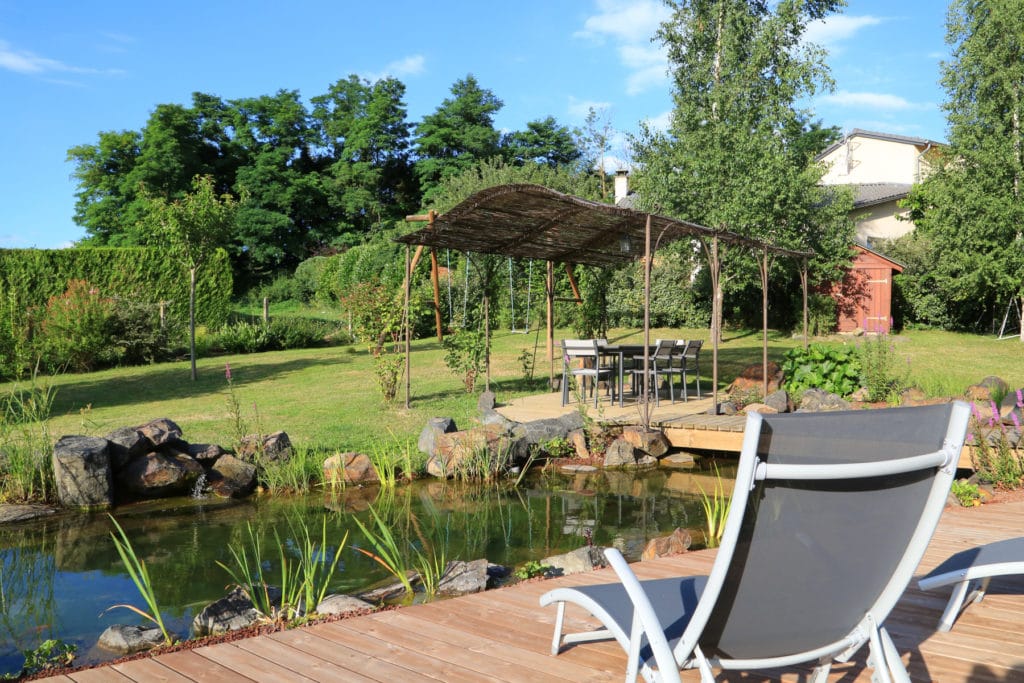 Pour leur projet de création et de réalisation d’un bassin au cœur de leur jardin, nous avons proposé à nos clients une ambiance naturelle faite de rochers et de végétaux choisis pour leurs caractéristiques esthétiques (couleur, forme, odeur…). C’est au plus près de leur terrasse à vivre, dans l’axe d’un magnifique dégagement visuel vers le grand paysage que nous avons décidé de le placer.