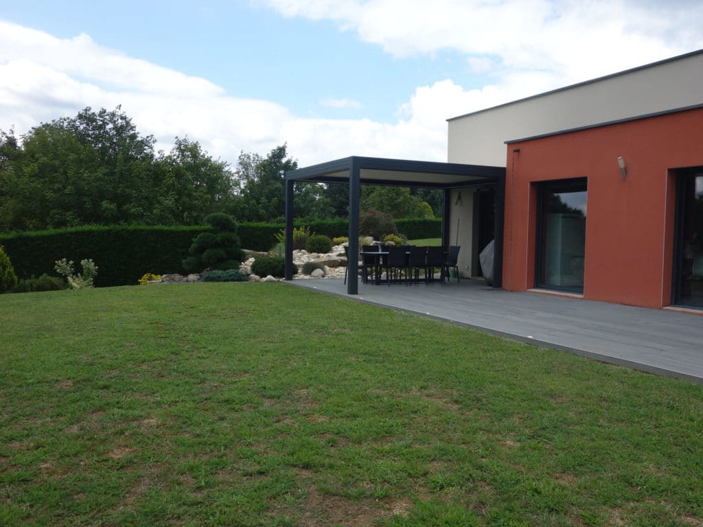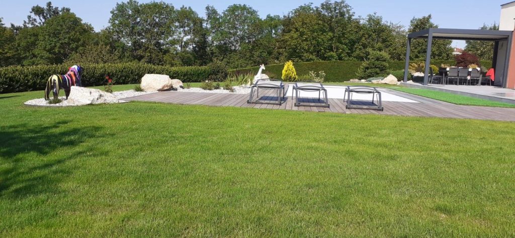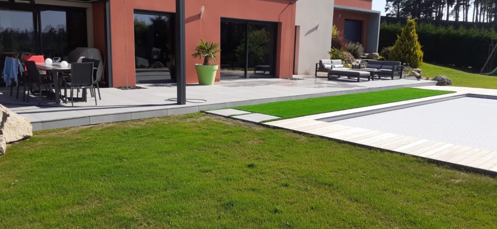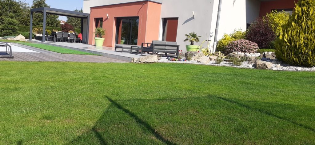 Les équipes de Lantana As de Trèfle Paysage ont réalisé ce chantier avec terrasse, piscine, éclairage et plantations sur la commune de SAINTE SIGOLENE.